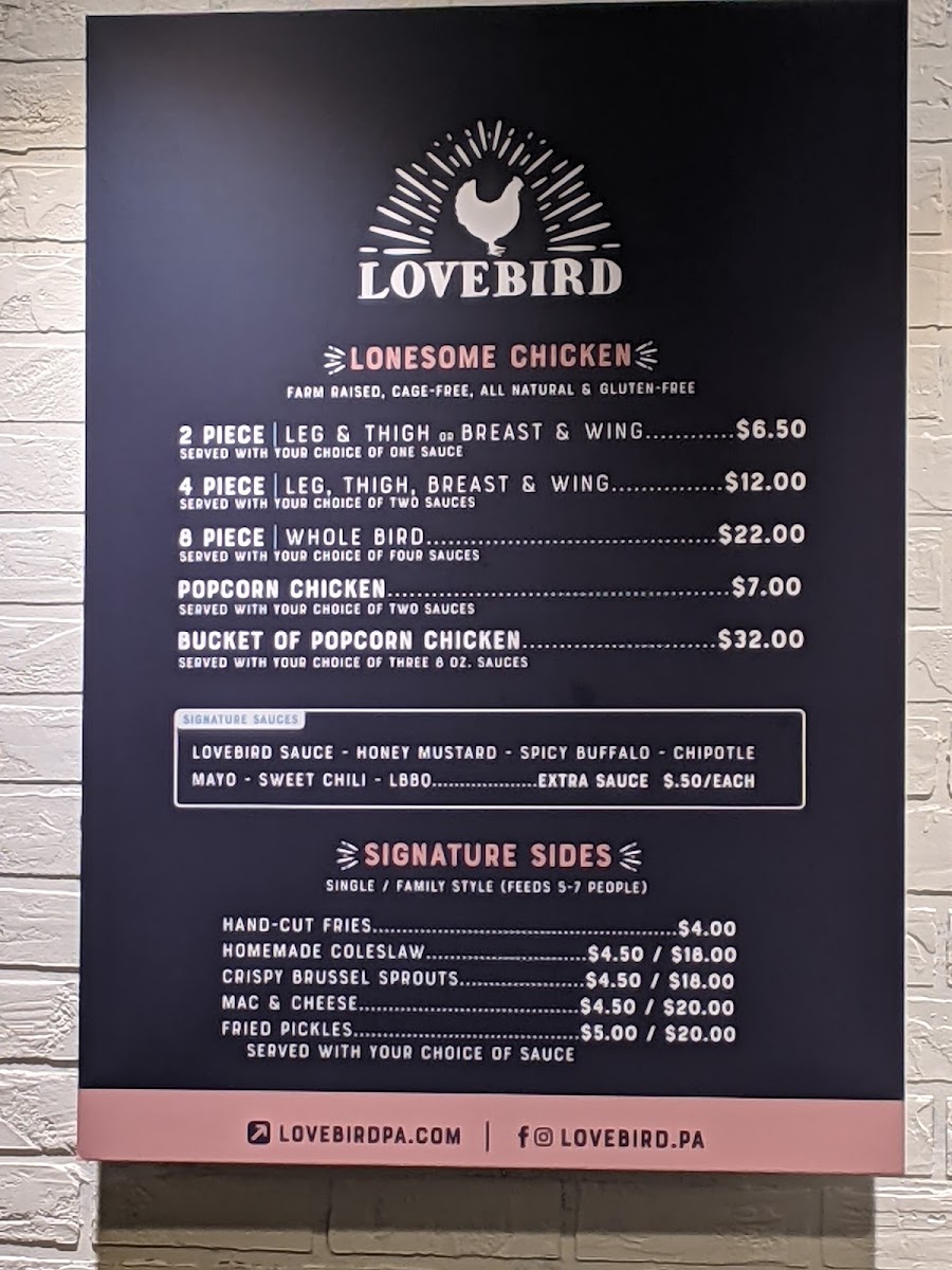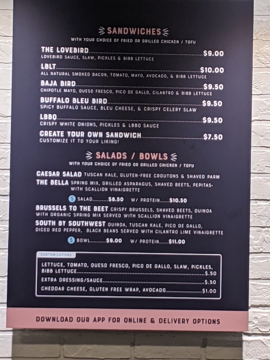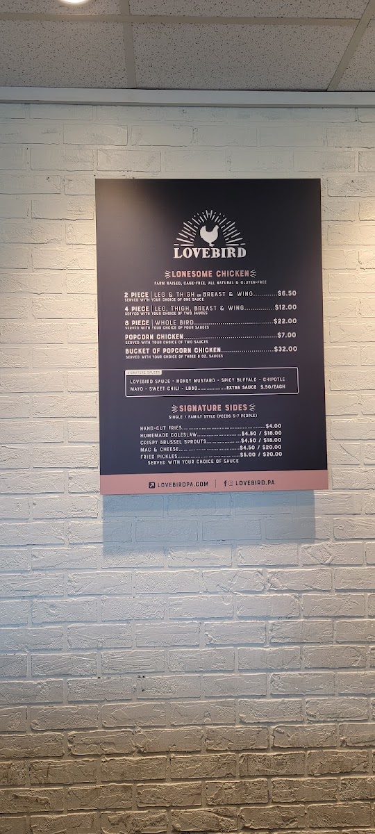 Lovebird, nestled in Bryn Mawr, PA, redefines chicken dining with its vibrant menu and thoughtful flavors. Their signature Tossed Popcorn Chicken stands out—crispy, tender bites coated in your choice of bold sauces. Sandwich lovers will appreciate the customizable options like the LBLT, featuring all-natural smoked bacon, avocado, and fresh tomato on a soft brioche bun. For those seeking a lighter fare, the South By Southwest Bowl blends quinoa, kale, black beans, and pico de gallo, topped with your choice of protein and avocado, making it both satisfying and wholesome.